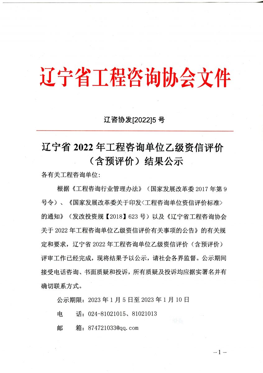 關(guān)于告知2022年遼寧省工程咨詢單位乙級(jí)資信專(zhuān)家評(píng)審結(jié)果的通知