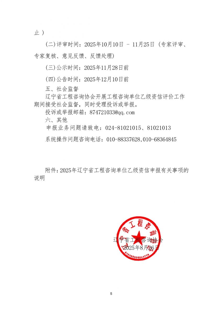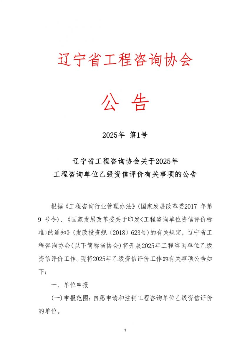遼寧省工程咨詢協會關于2025年 工程咨詢單位乙級資信評價有關事項的公告