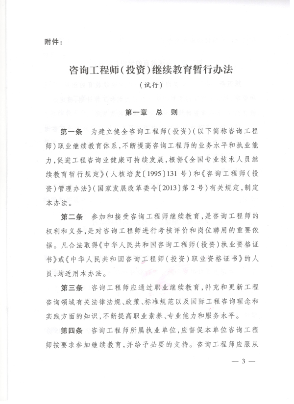 中國工程咨詢協(xié)會關于印發(fā)《咨詢工程師(投資)繼續(xù)教育暫行辦法(試行)》的通知