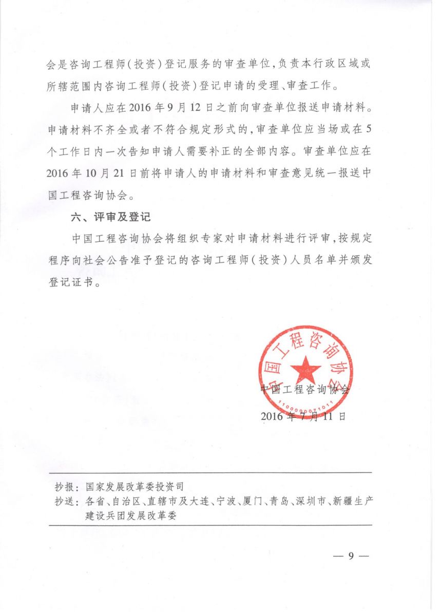 中國工程咨詢協(xié)會關(guān)于2016年咨詢工程師(投資)登記申報(bào)有關(guān)事項(xiàng)的通知