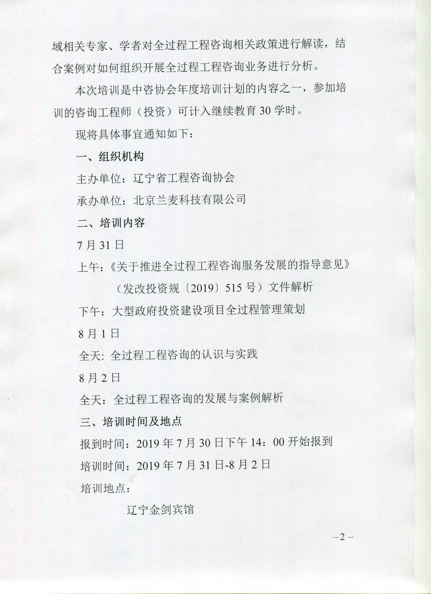 遼寧省工程咨詢(xún)協(xié)會(huì)關(guān)于舉辦 “全過(guò)程工程咨詢(xún)實(shí)務(wù)”培訓(xùn)班的通知