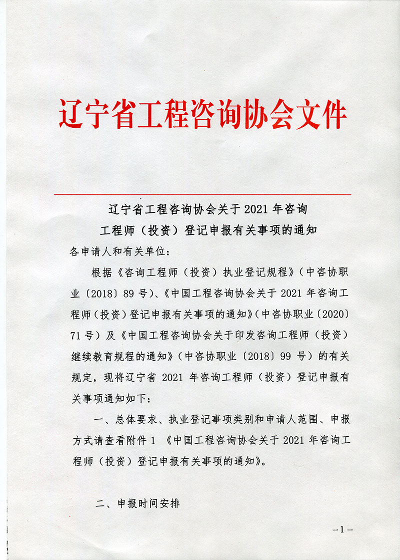 遼寧省工程咨詢協(xié)會關(guān)于2021年咨詢 工程師(投資)登記申報有關(guān)事項的通知