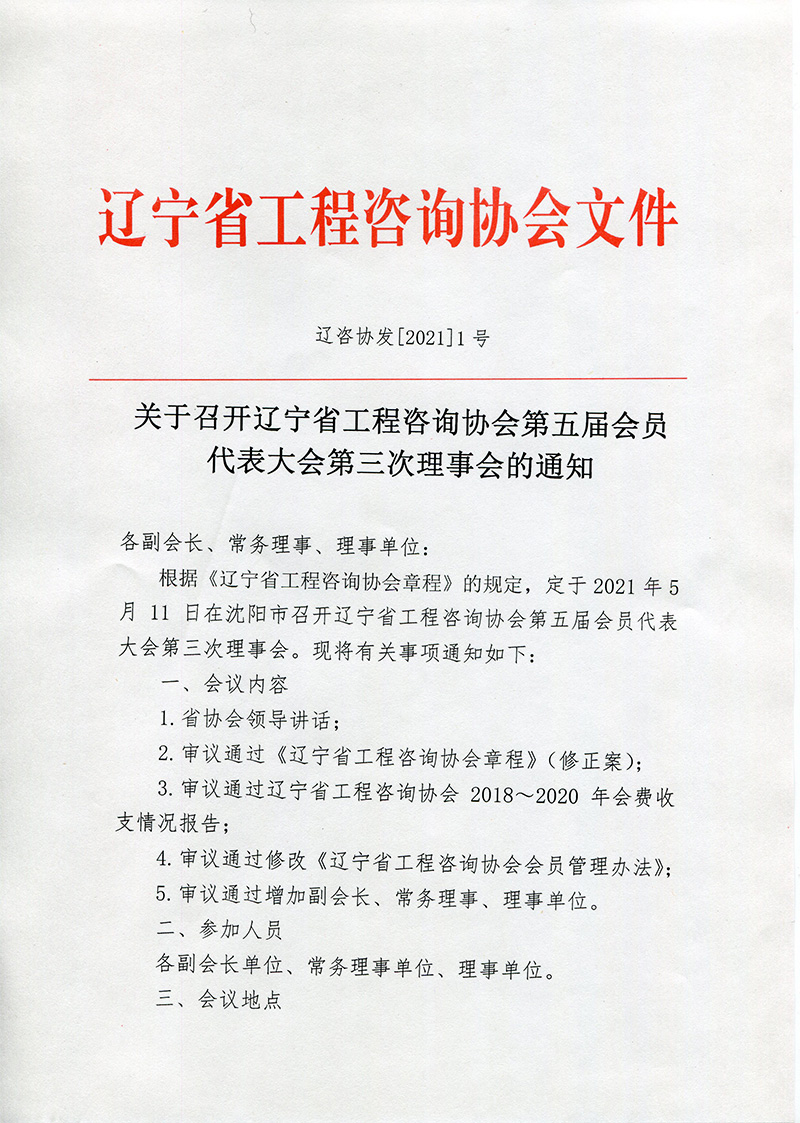 關(guān)于召開遼寧省工程咨詢協(xié)會第五屆會員代表大會第三次理事會的通知